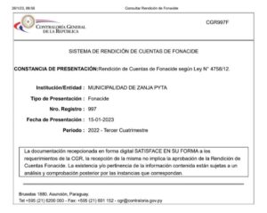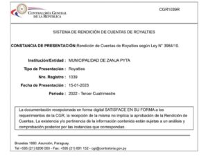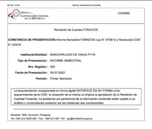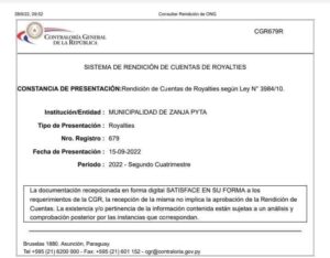 ☝️🇵🇾 Siempre nos debemos al Pueblo y para el Pueblo, por lo tanto, comunicamos que estamos al día con nuestras rendiciones de cuenta ante la Contraloría General de la República, en cuanto a Fonacide y Royalties.