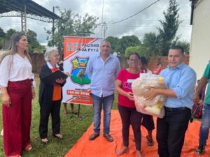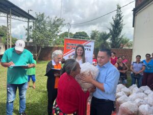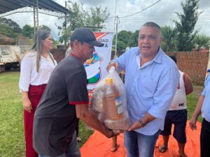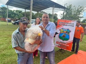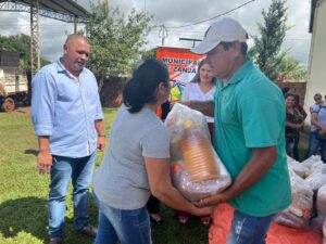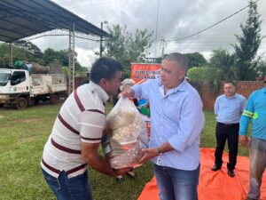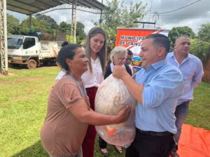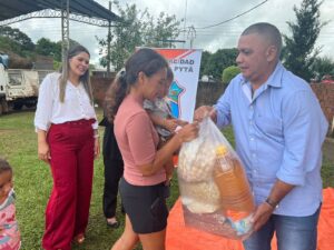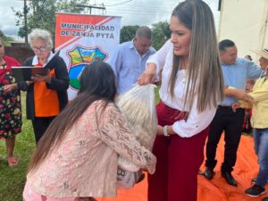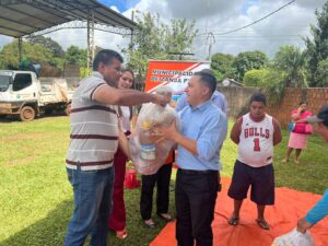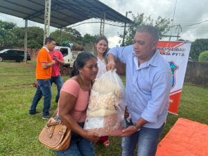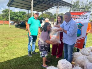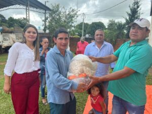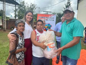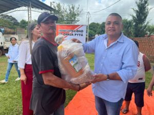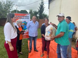 Tercer dia de entrega de los kits alimenticios consistentes en productos no perecederos entregados hoy gracias a las gestiones del Intendente Municipal Don Pablino Arévalos y el Diputado Nacional Juancho Acosta, fueron beneficiados mas de 120 familias que practicamente han sido perjudicados por las intensas lluvias que azotaron nuestro distrito.