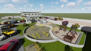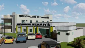 #Intendente, Pablino Arévalos, la Primera Dama, Sra. Gladys González, el Presidente de la Junta Municipal, Prof. Justo Arnaldo Achucarro, y su colega, la Sra. Mirta Dávalos. En la ocasión, el jefe comunal realizo la presentación del proyecto de construcción de la nueva sede de la Municipalidad Local, al mismo tiempo solicitó el apoyo del Gobierno Departamental en este ambicioso emprendimiento.